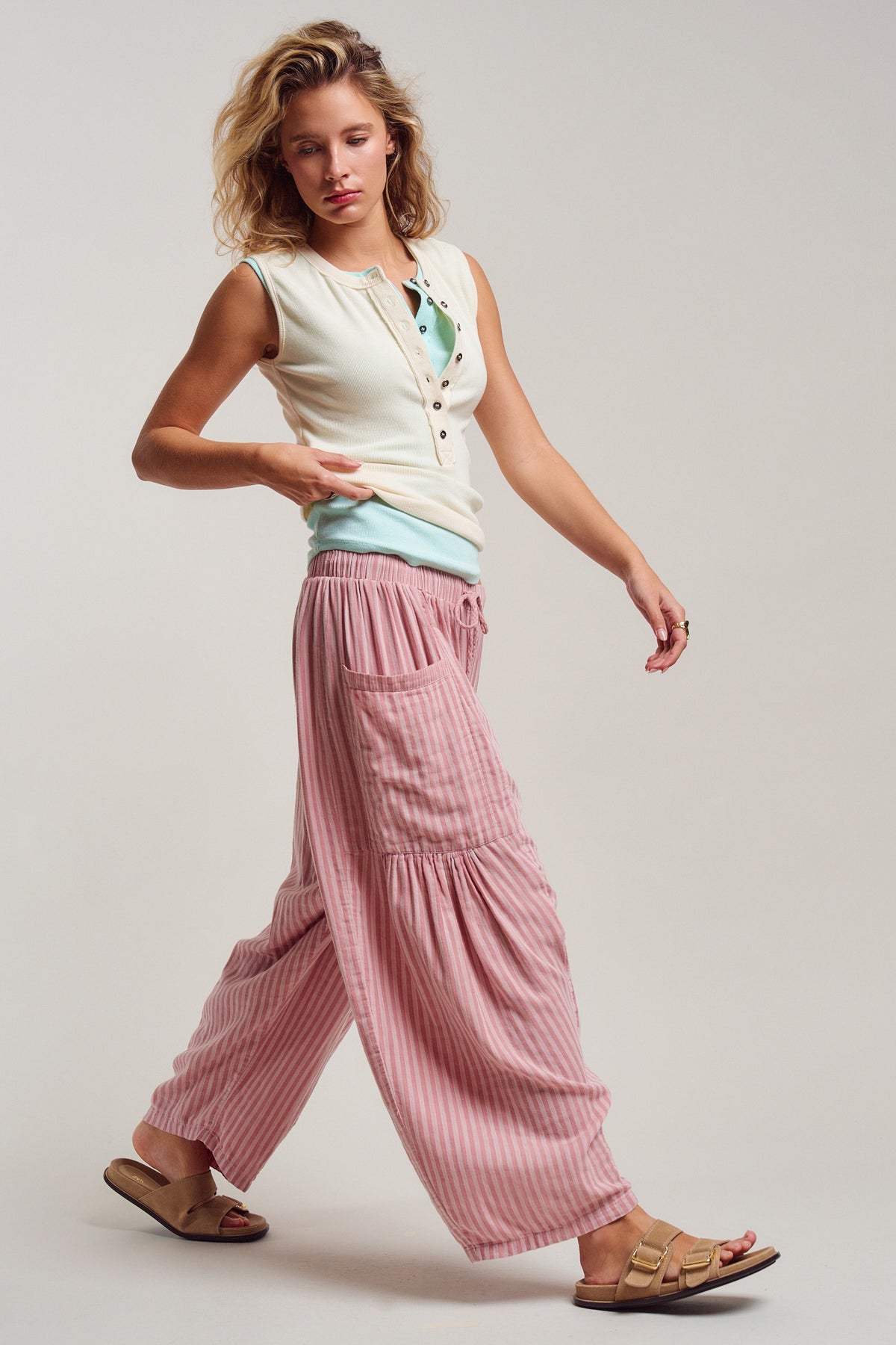 Float through your day in effortless boho-chic style with these easygoing pants. Designed with a relaxed, flowy fit and lightweight feel, they feature a comfy elastic drawstring waist and oversized pocket details for the perfect laid-back look. Easy to pair with fitted tanks, cropped graphic tees, or breezy blouses. Perfect for spring and summer days, vacations, festivals, and everyday errands with a chic, carefree vibe.