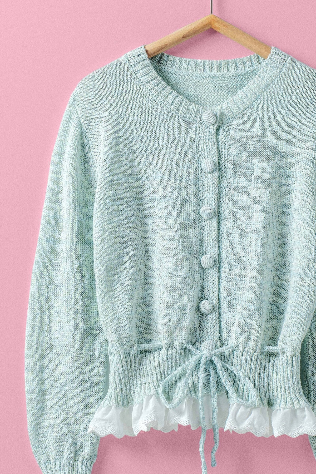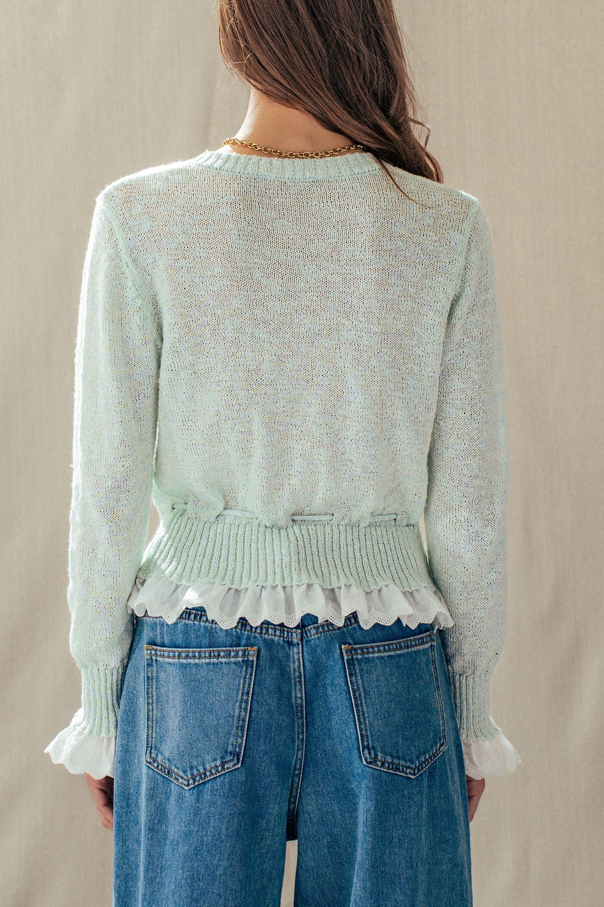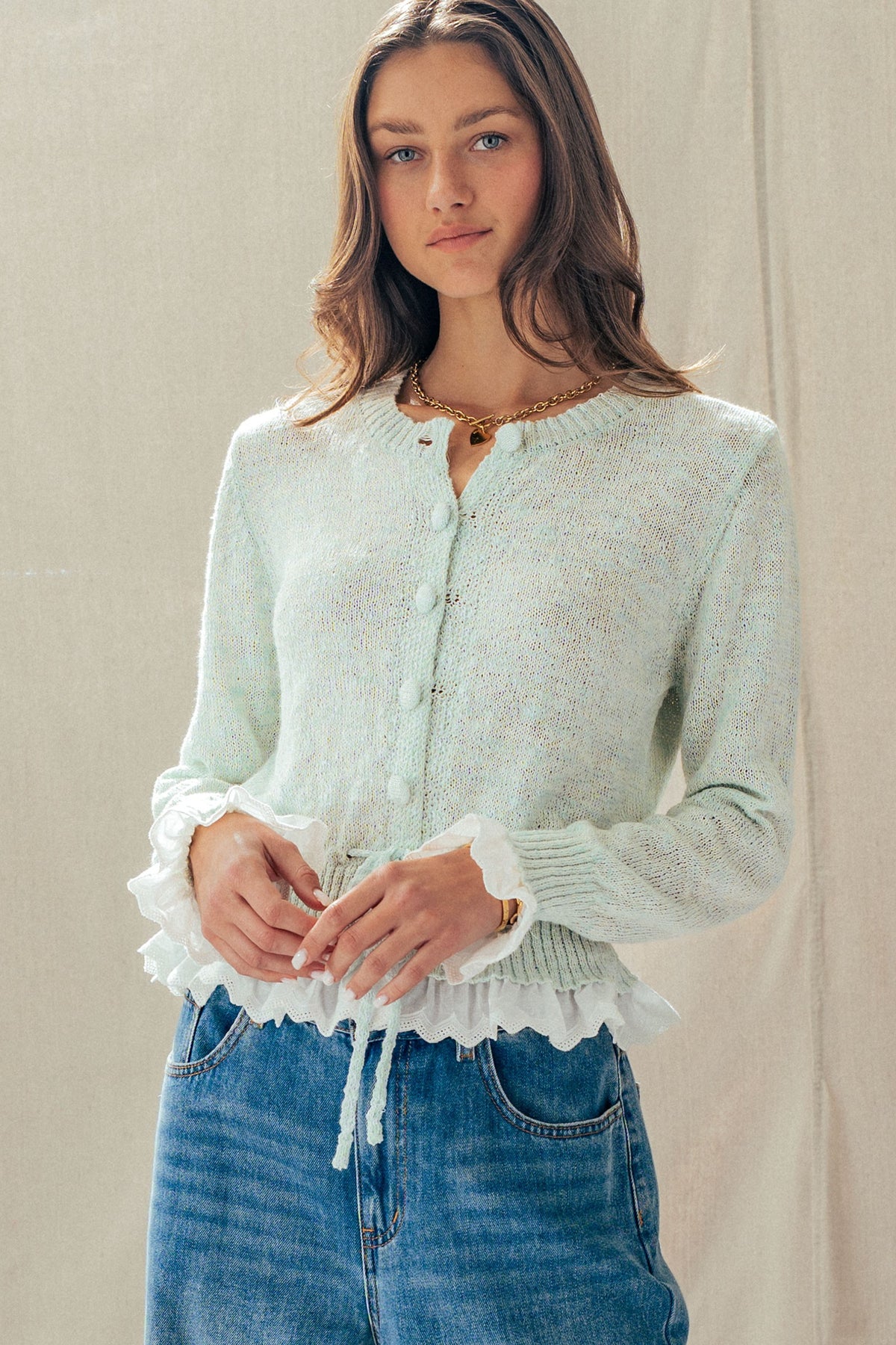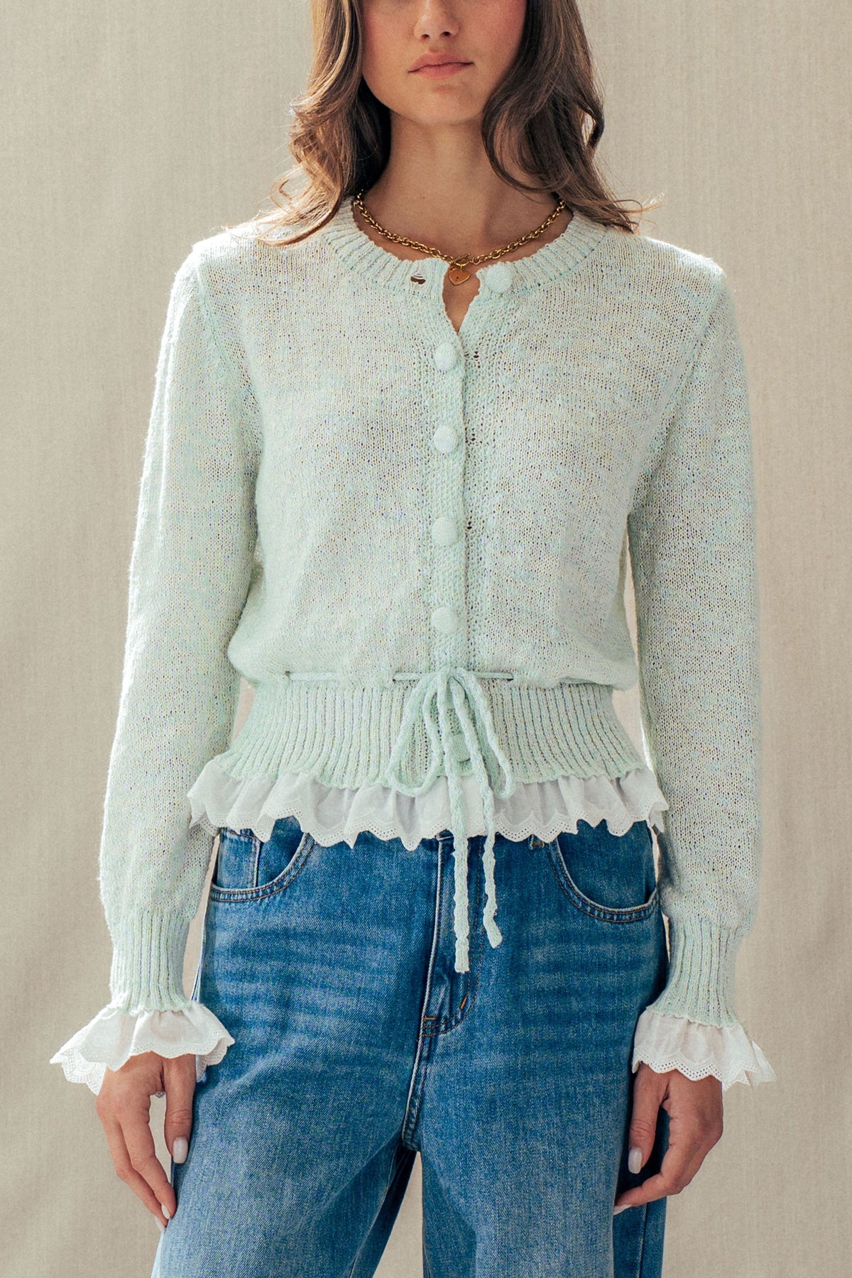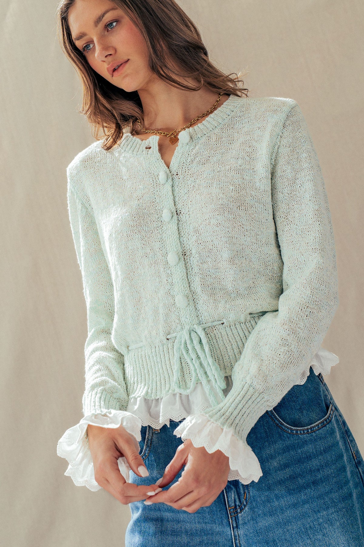 serendipity ruffle trim knit cardigan - mint (additional view)