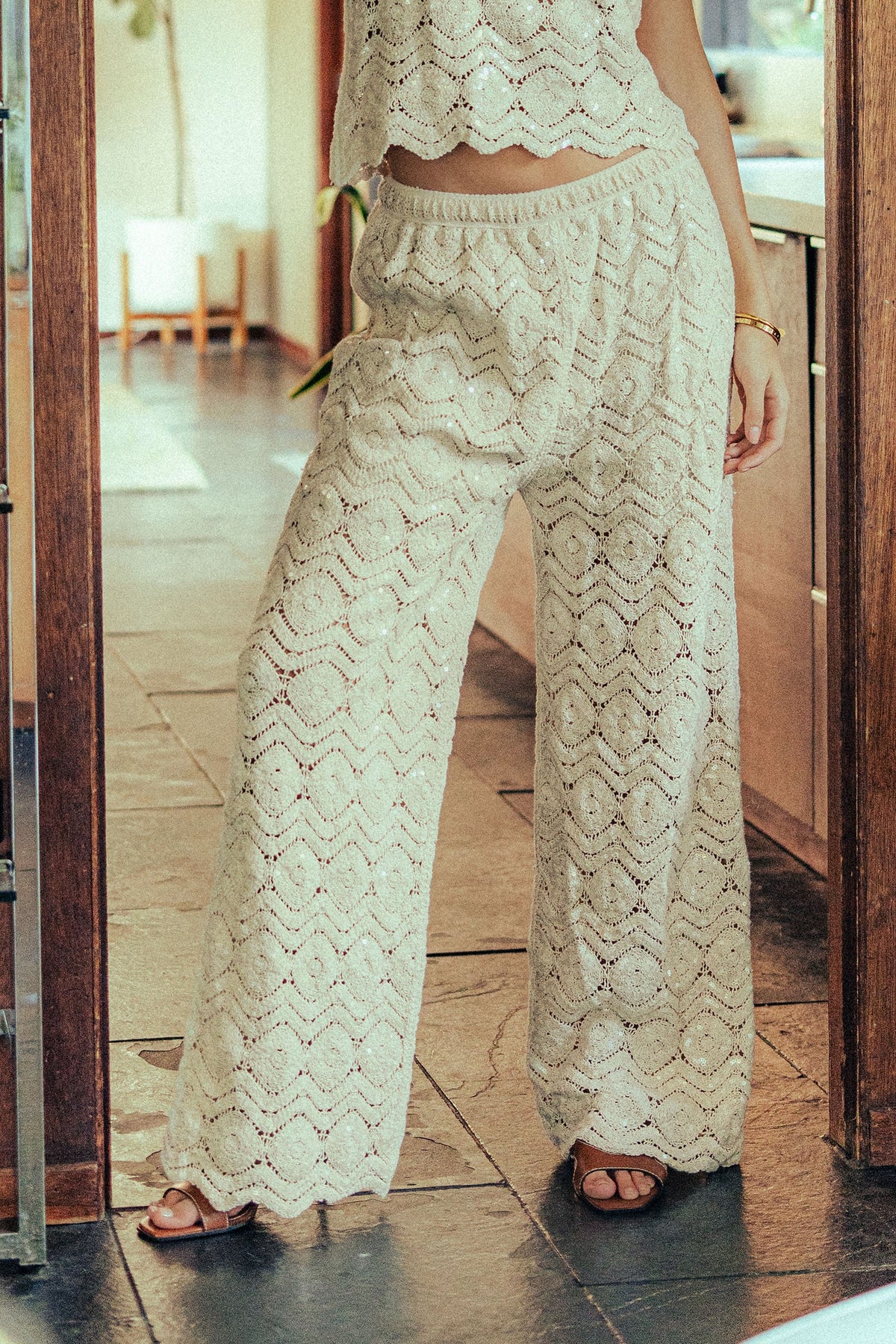 Bring coastal elegance to your wardrobe with these crochet pants—the perfect blend of comfort and statement style. Pair them with the matching top or keep it simple with a fitted tank for an effortlessly chic, vacay-ready warm-weather look.