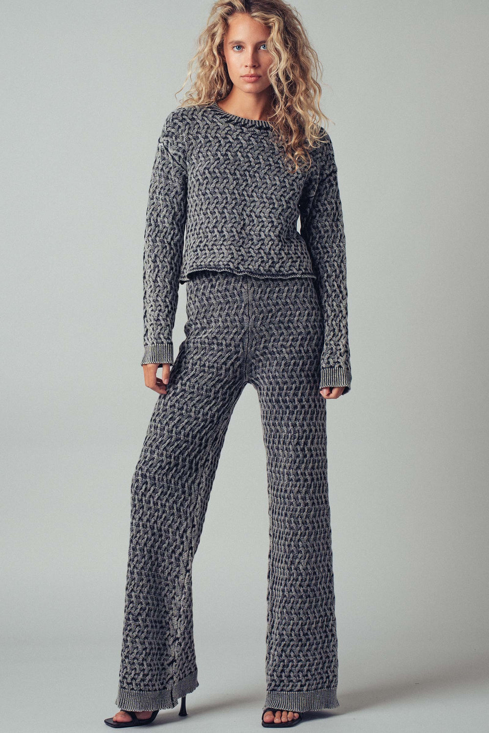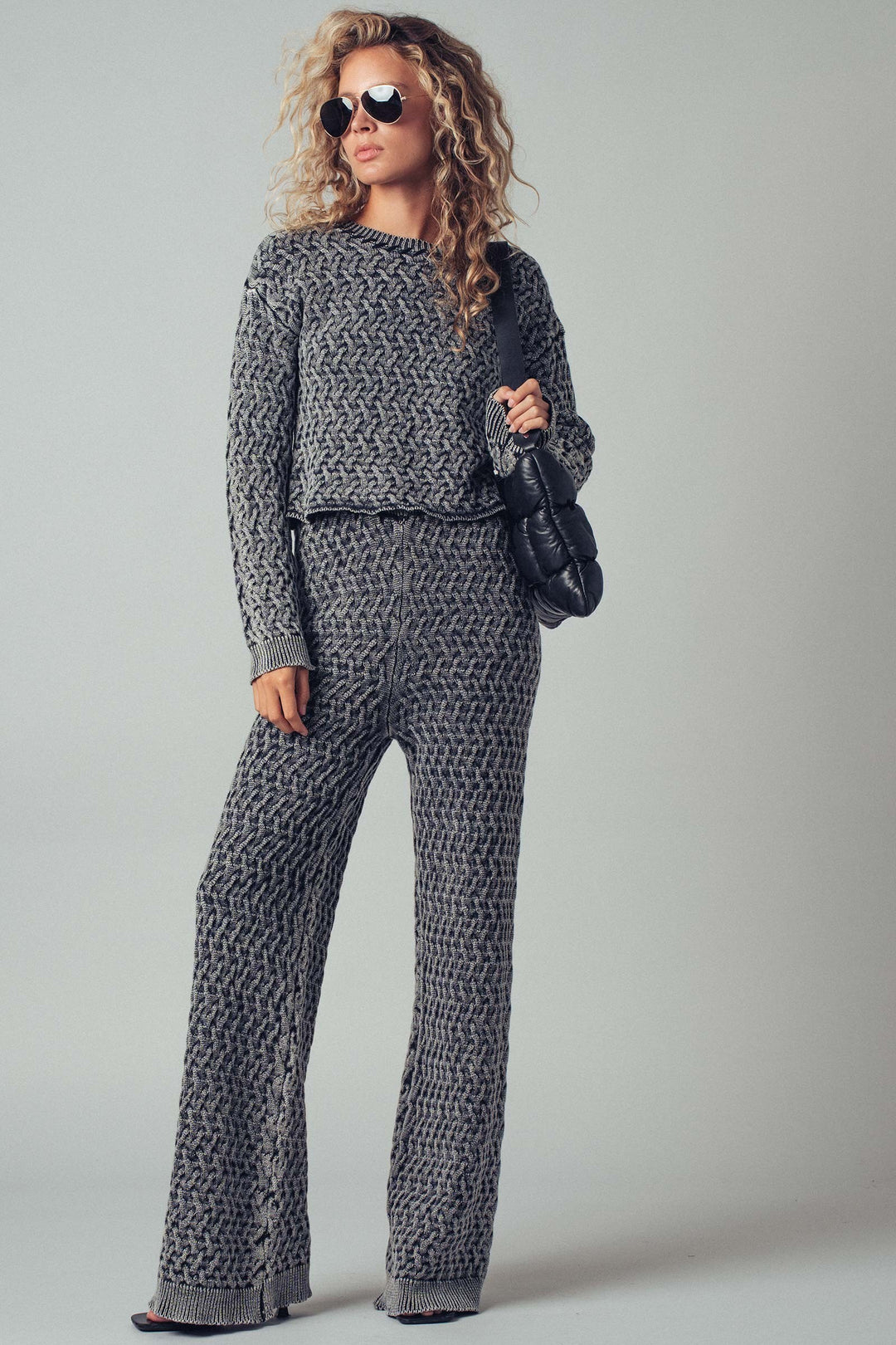 Elegant Ribbed Knit Poncho Top Bottom Set