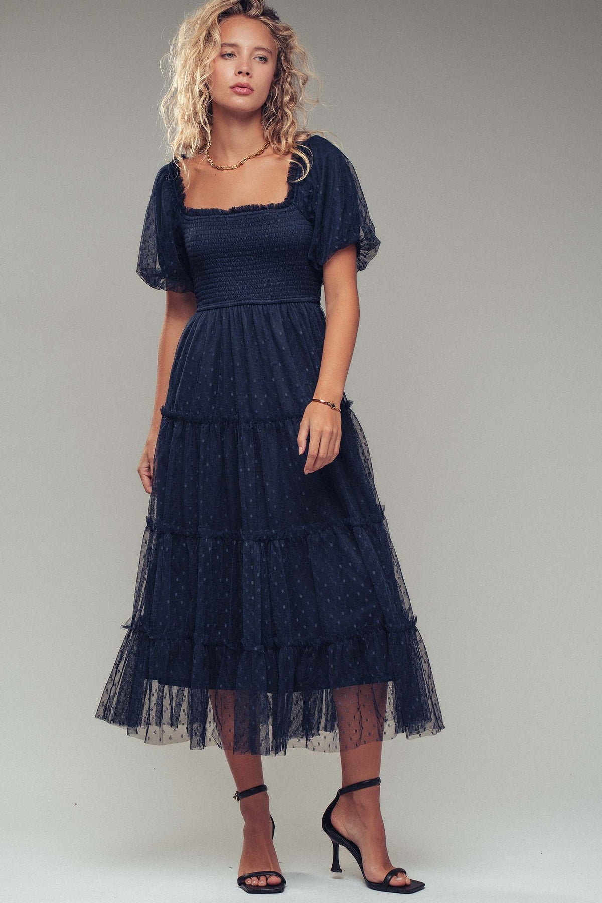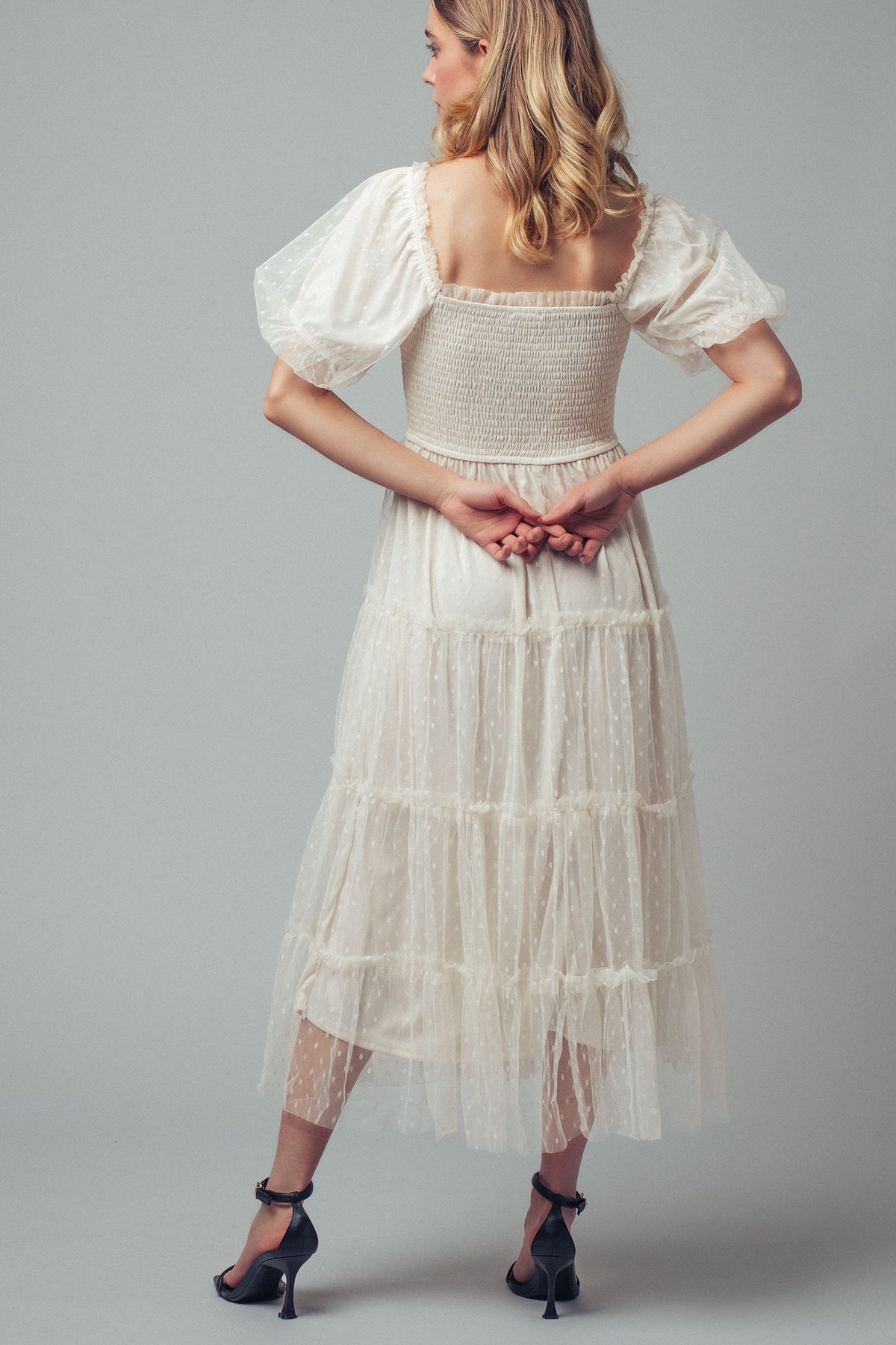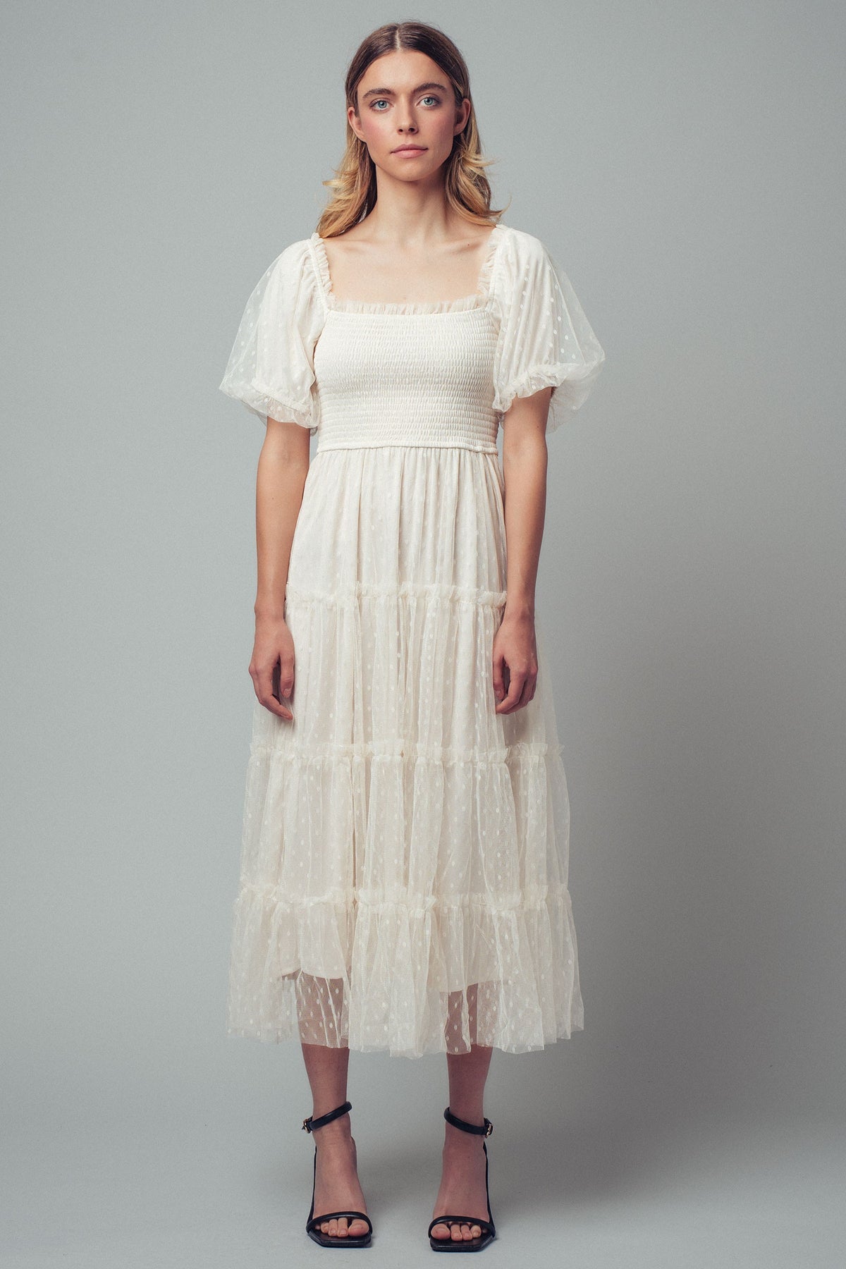 Smocked bodice with a square neckline for a flattering, stay-put fit