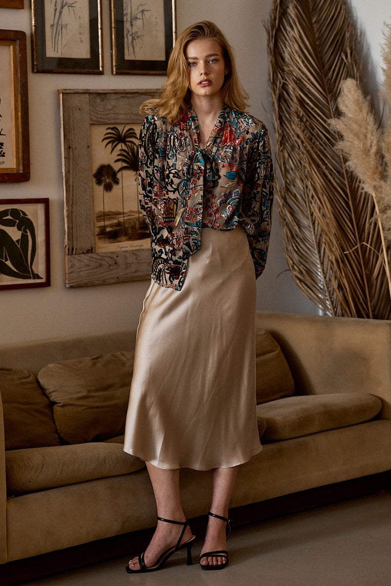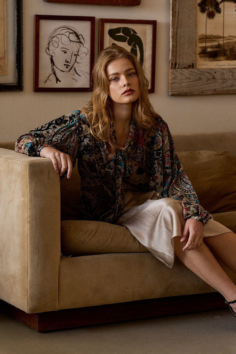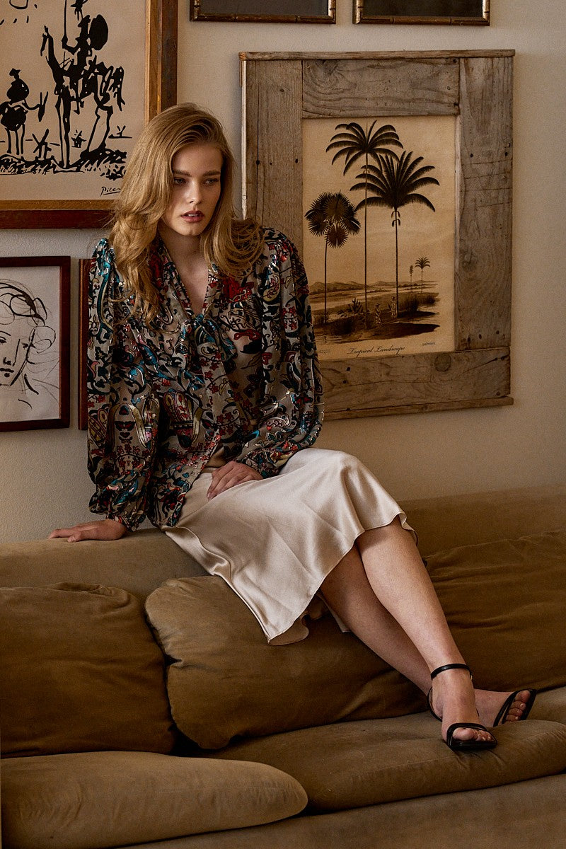 A statement blouse that blends rich texture and romantic detailing perfect for dressing up your everyday look with a touch of artistry.