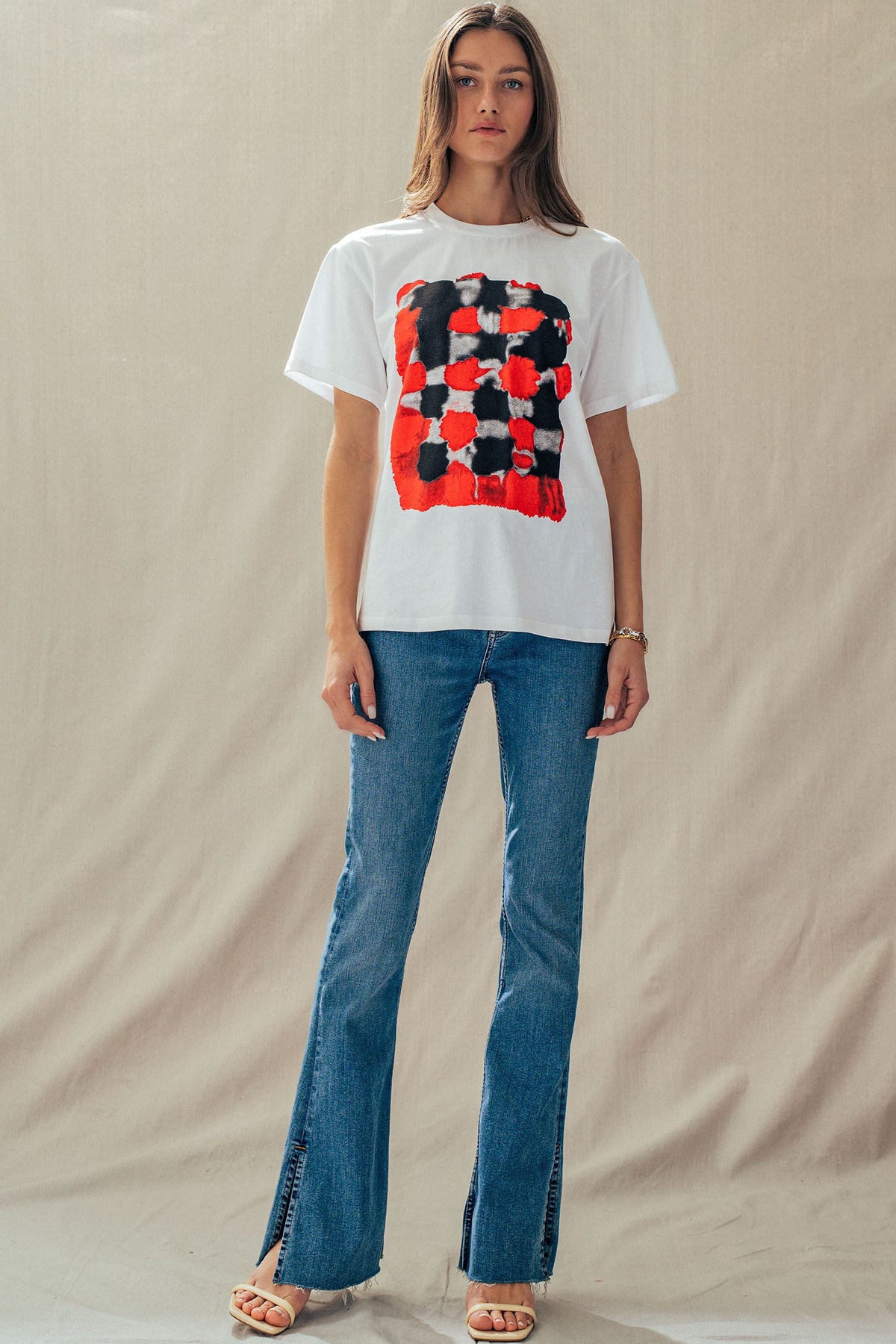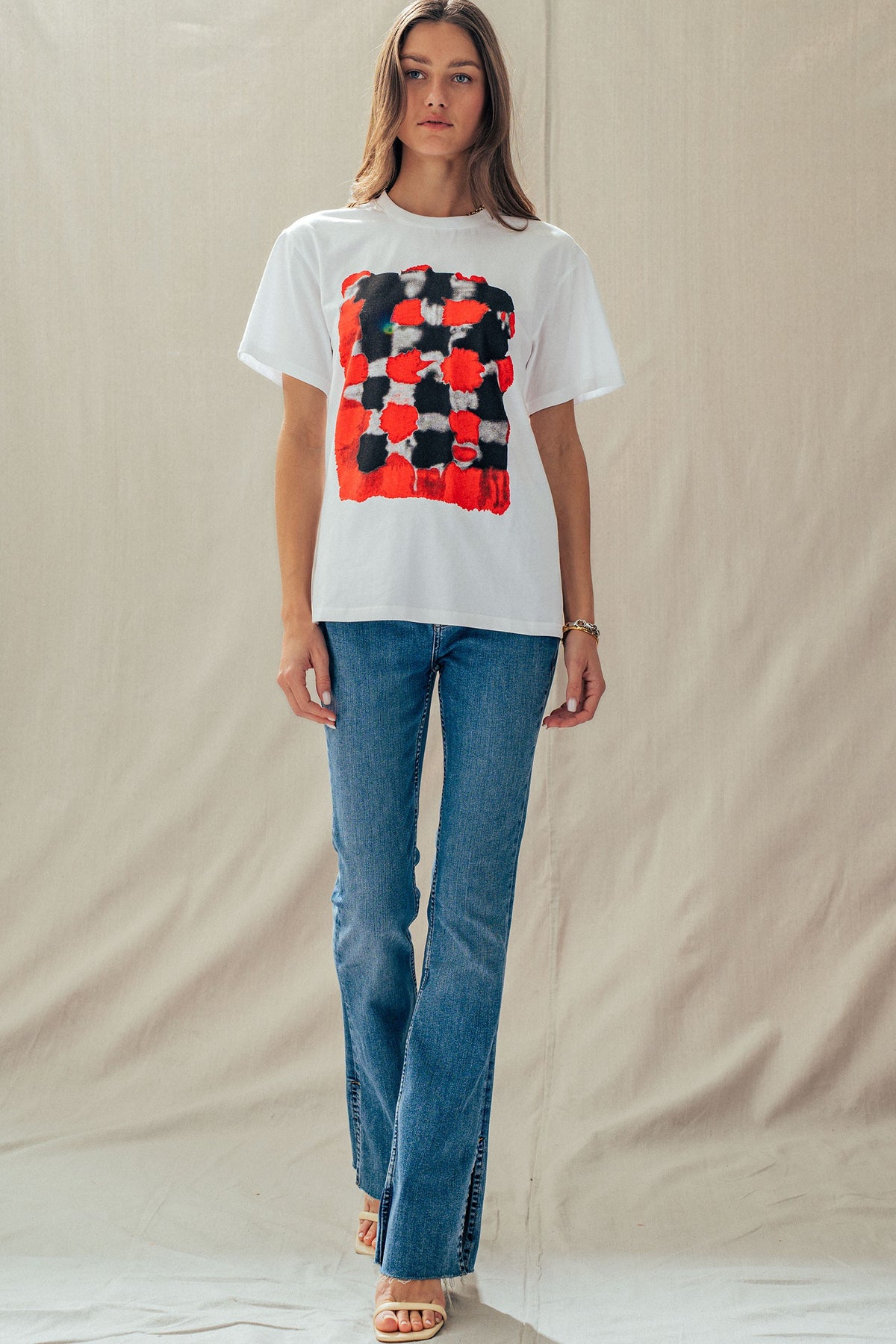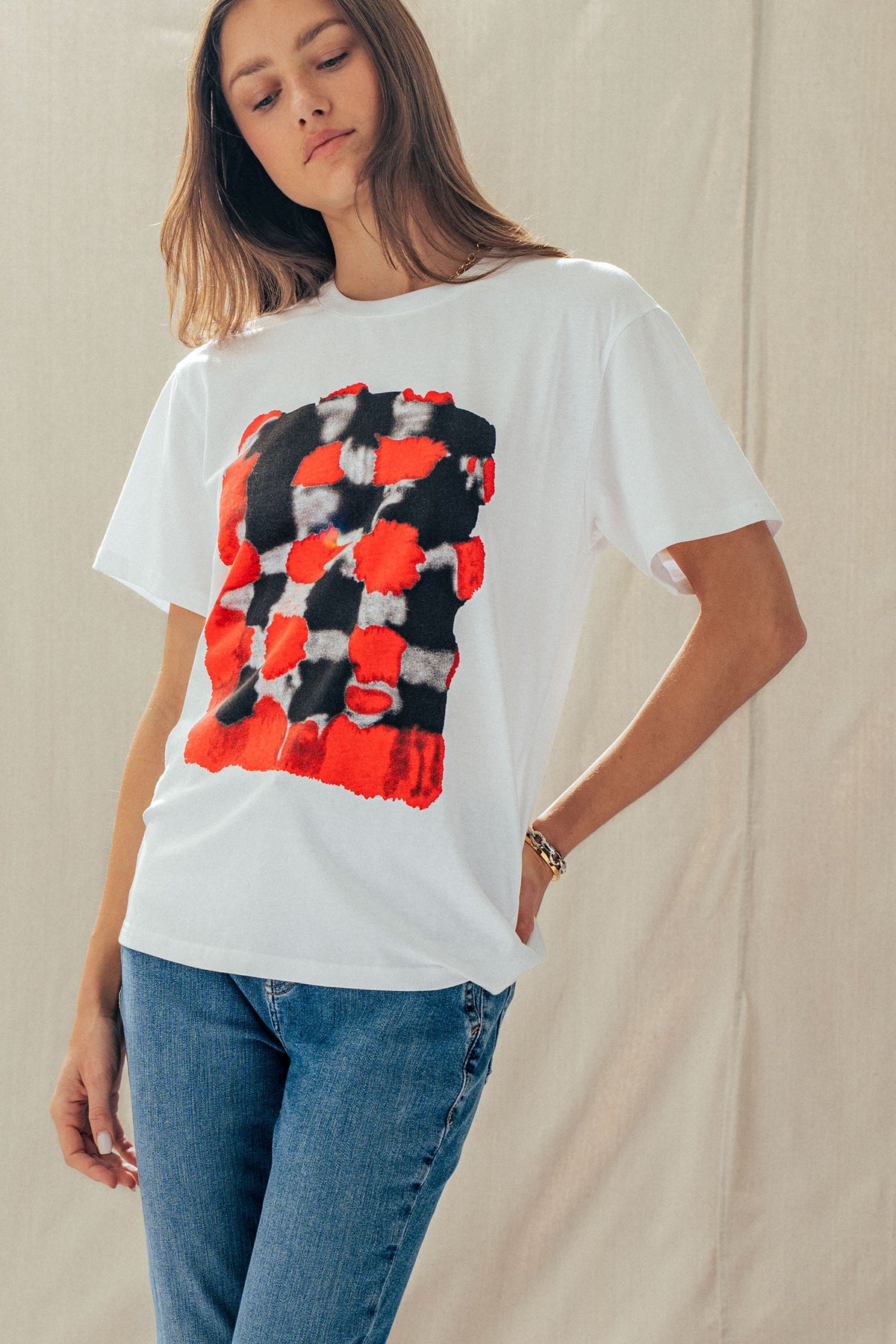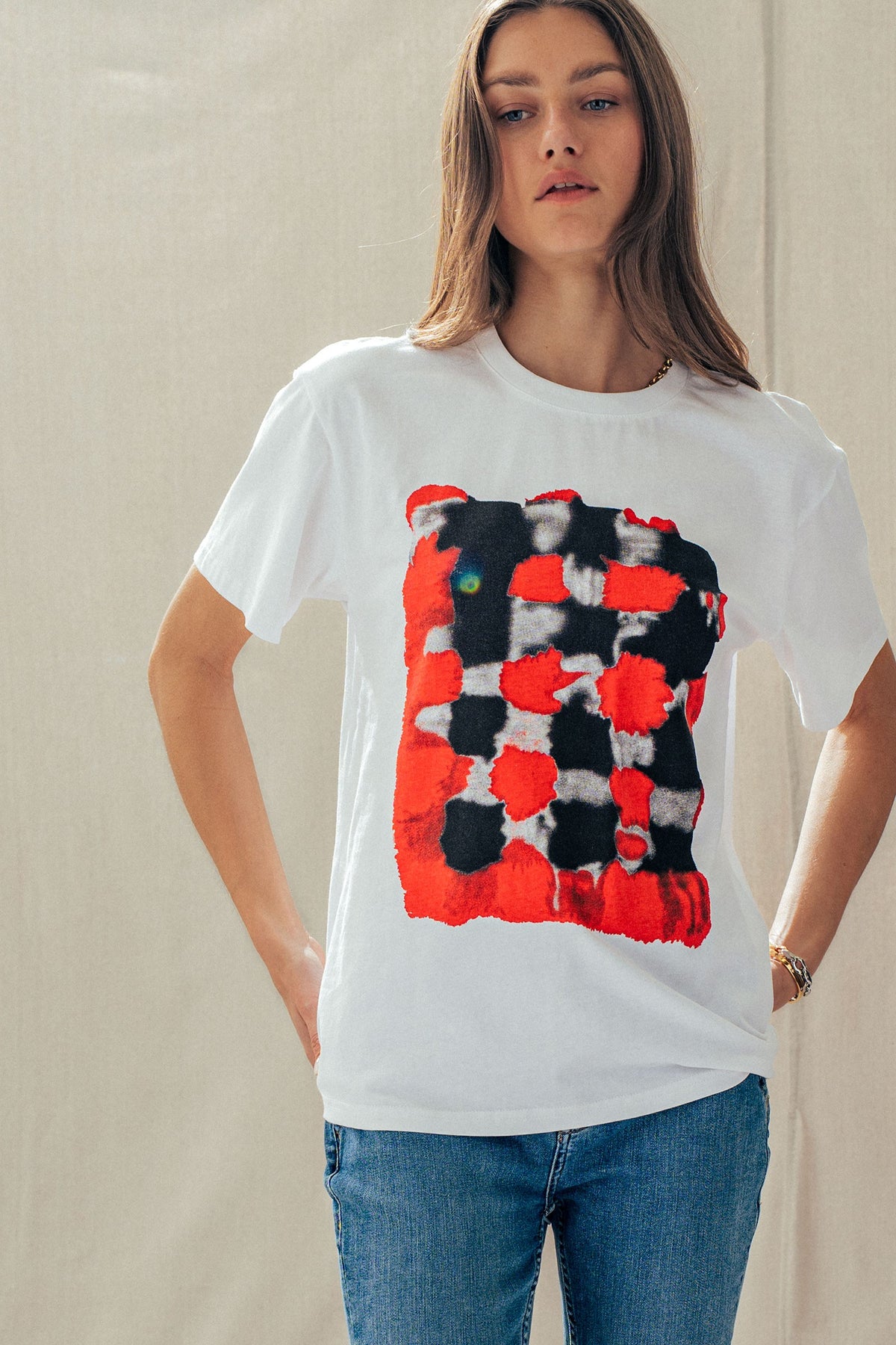 A bold yet effortless as it is essential, this easy-to-style artful, painterly check design pairs perfectly with everyday jeans, denim shorts, cargo pants or a playful skirt. A must-have piece designed for all-day comfort with a stylish, laid-back touch.