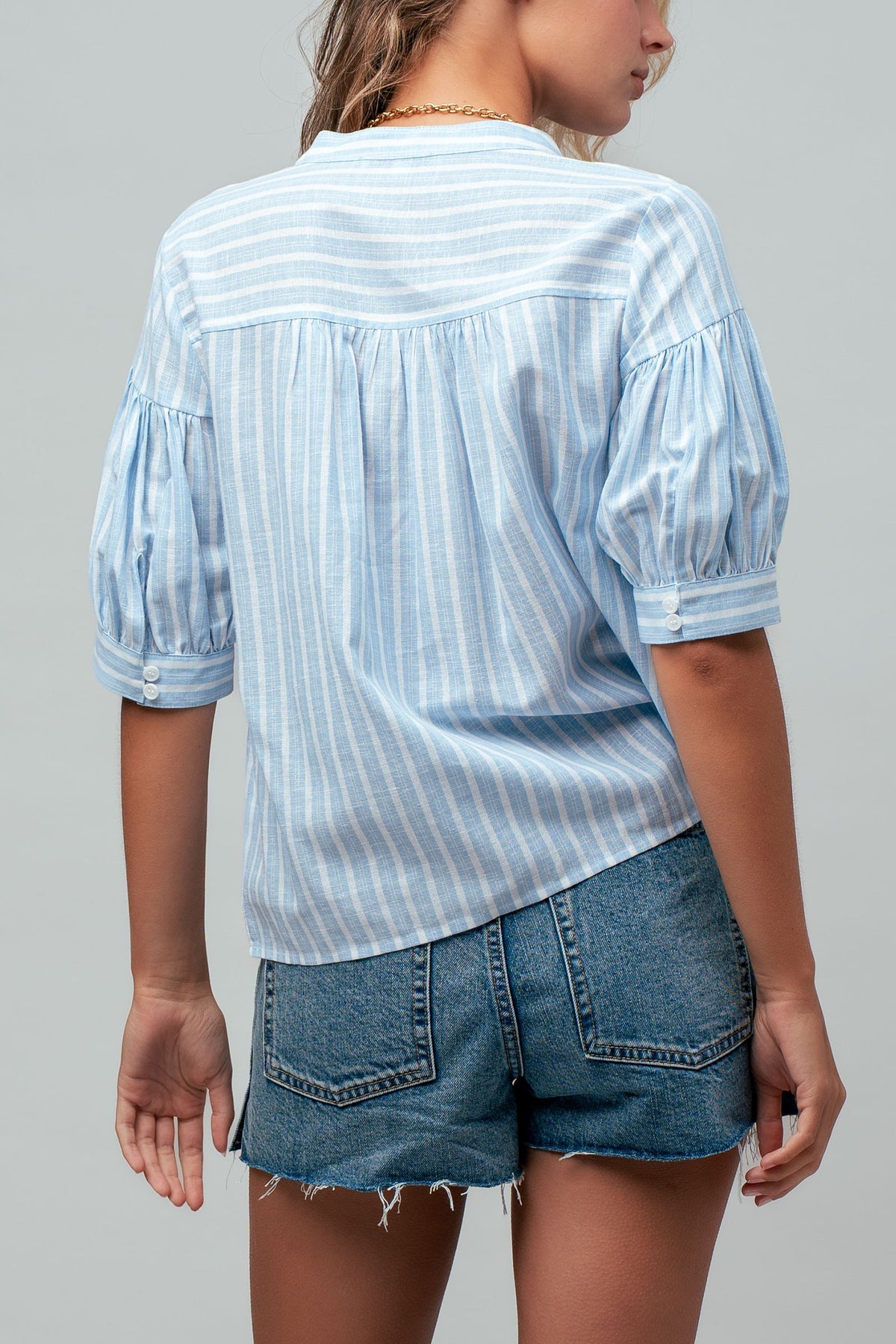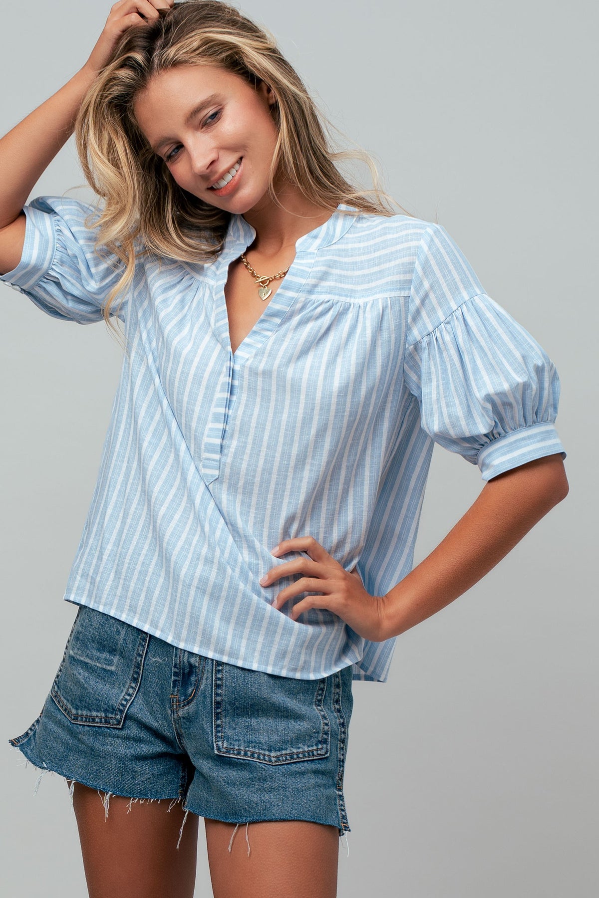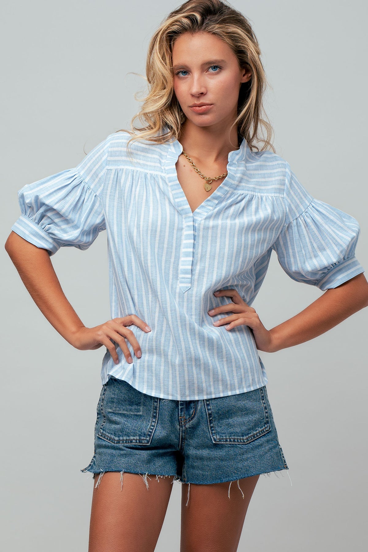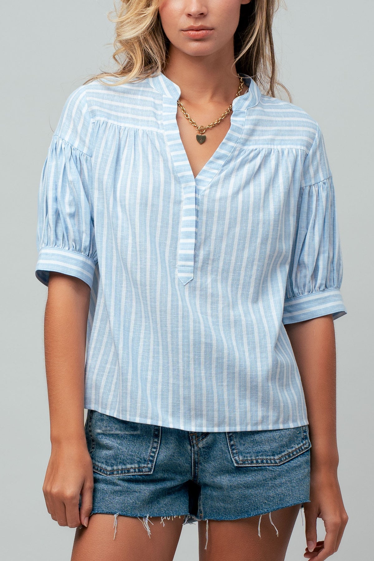 A light and airy striped blouse that blends soft structure with an easy, summertime silhouette.