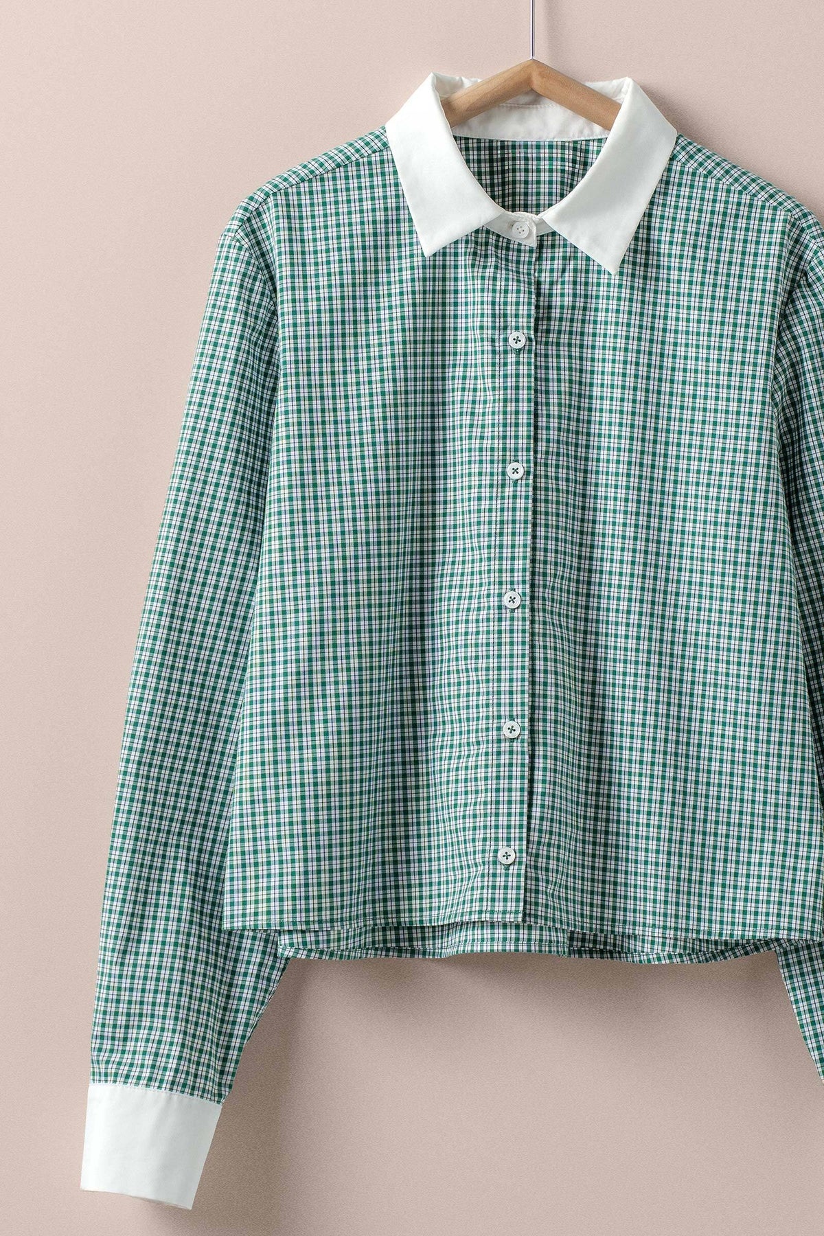 A timeless everyday shirt infused with subtle preppy charm designed with a crisp contrast collar and a softly structured drape that elevates its classic check pattern.